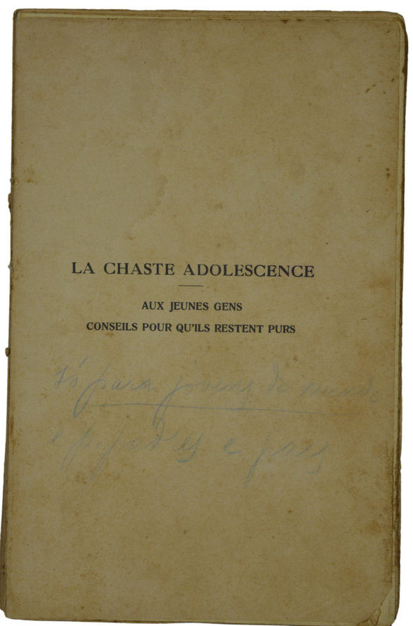 LA CHASTE ADOLESCENCE Voltar 15 de dezembro de 2021 por Museu de Arte Sacra de Mato Grosso   Documento cropped-LA-CHASTE-ADOLESCENCE-FRENTE.jpg Baixar Anexos FRENTE VERSO Metadados Miniatura Compartilhar TitleLA CHASTE ADOLESCENCEDescriptionLitúrgicoNúmero de registro1981/013/162DenominaçãoCOLEÇÃO LIVROS - 013TítuloLA CHASTE ADOLESCENCEAutorMONSEIGNEUR TOTH TIHAMÉRResumo descritivoLeituraLargura (cm)13,5 cmProfundidade1 cmAltura (cm)1 cmComprimento (cm)20, 5 cmPeso (g)260 gLocalizaçãoReserva TécnicaForma de aquisiçãoDoaçãoData de Produção1931Data de aquisição6 de novembro de 1981ProcedênciaAcervo pessoal de Dom AquinoEstado de conservaçãoRuimObservaçãoCOM MARCAS DE USO E TEMPO. CAPA E FOLHAS SOLTASUso/ocupação/funçãoMuseuMaterialPapel Continue navegando LEGENDA INTERPARTIDARIA MANUAL ECCLESIASTÍCO Voltar para a página de itens