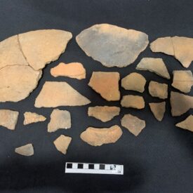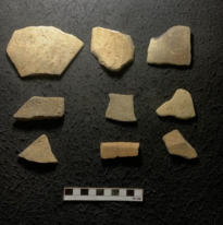A cerâmica é o material confeccionado e moldado pela mão humana a base de variados tipos de terra, com diversas finalidades de uso, como no armazenamento de água, alimentos, restos mortais e entre outros. Disponível 09 fragmentos de peças de borda. A borda, se localiza na parte superior da cerâmica.