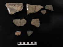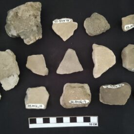 A cerâmica é o material confeccionado e moldado pela mão humana a base de variados tipos de terra, com diversas finalidades de uso, como no armazenamento de água, alimentos, restos mortais e entre outros. Disponível em 08 fragmentos de cerâmica (6 Bases, peça localizada na parte inferior da cerâmica, e 2 Bordas, peça localizada na parte superior da cerâmica)