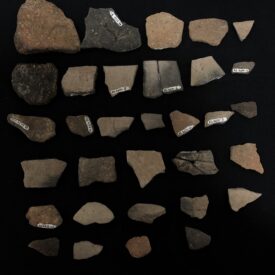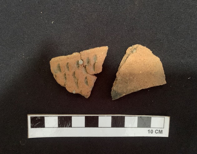A cerâmica é o material confeccionado e moldado pela mão humana a base de variados tipos de terra, com diversas finalidades de uso, como no armazenamento de água, alimentos, restos mortais e entre outros. Disponível 45 fragmentos de cerâmicas (Bordas, parte superior da cerâmica, e Paredes