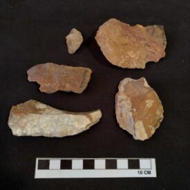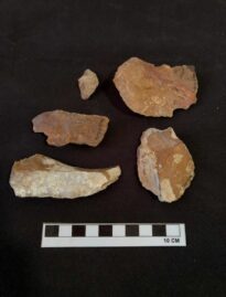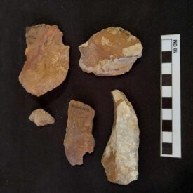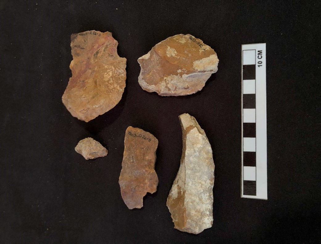 Líticos Arqueológicos - Lascas. Artefatos líticos são itens feitos de pedra que foram modificados pelas mãos humanas para desempenhar funções específicas, como a confecção de ferramentas e utensílios. São constituídas por siltito e arenito silicificados.