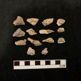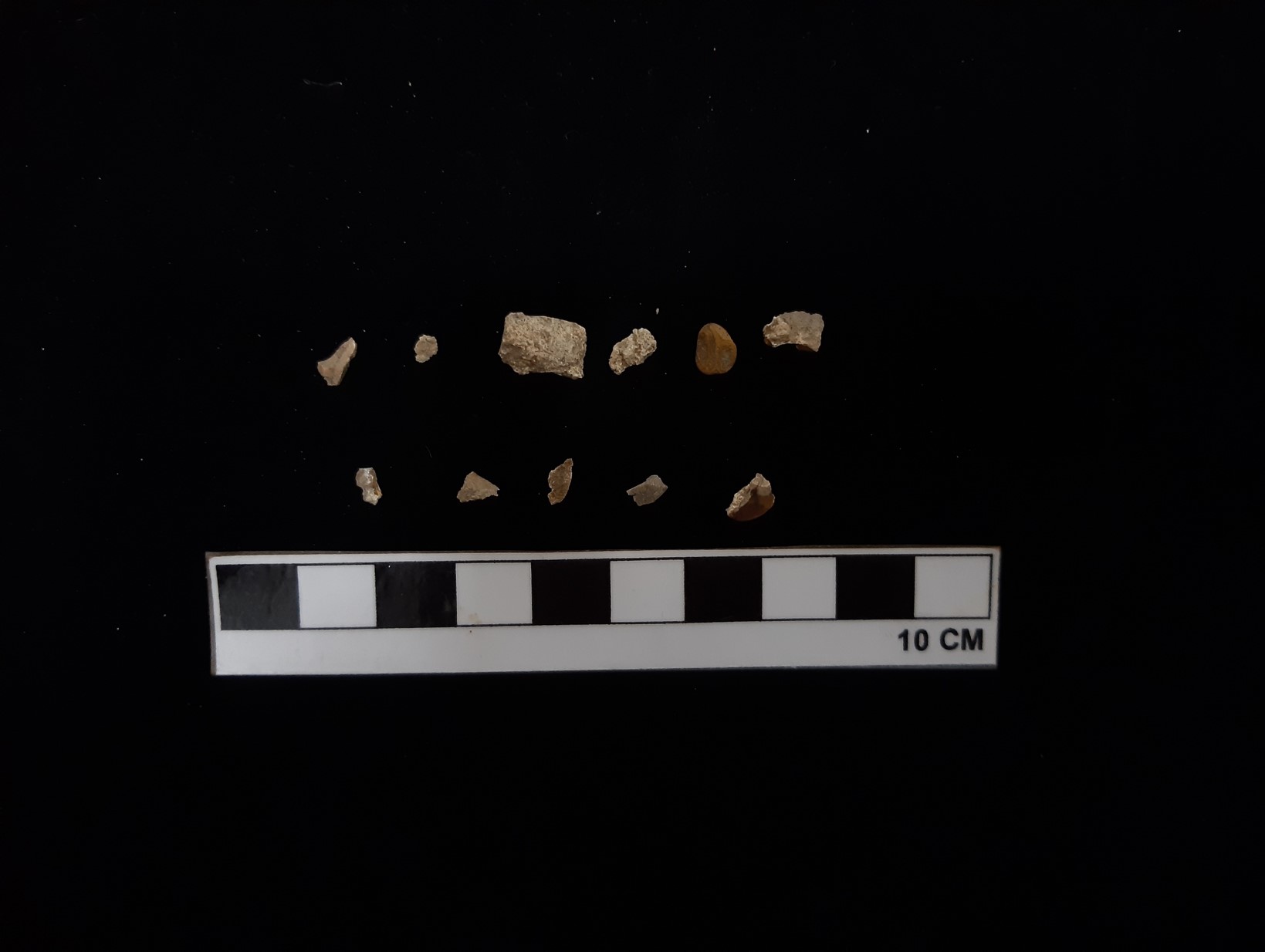 Líticos Arqueológicos - Lascas. Artefatos líticos são itens feitos de pedra que foram modificados pelas mãos humanas para desempenhar funções específicas, como a confecção de ferramentas e utensílios. São constituídas por siltito e arenito silicificados.